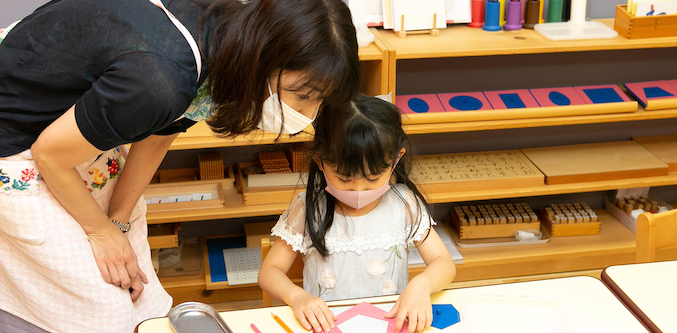 日本語の時間以外は英語で過ごすということが徹底されていたため、スクリーニングでの質問にも対応できる英語力を、スクールに通う中で自然に身に付けることができました。また、日頃のスクールでの生活に加えてホームワークでも、リーディング・ライティングのサポートをしっかりして頂いたことにより、受験対策で焦ることはありませんでした。モンテッソーリ教育を通じて色々な経験をさせていただいたこと、縦割り形式で年齢にとらわれずお友達とふれあえたことなども、テストで落ち着くことができた理由だと思います。願書提出の際に必要でしたスクールレポートも、急なお願いであったにもかかわらず、ご丁寧なレポートを書いていただき、大変感謝いたしております。